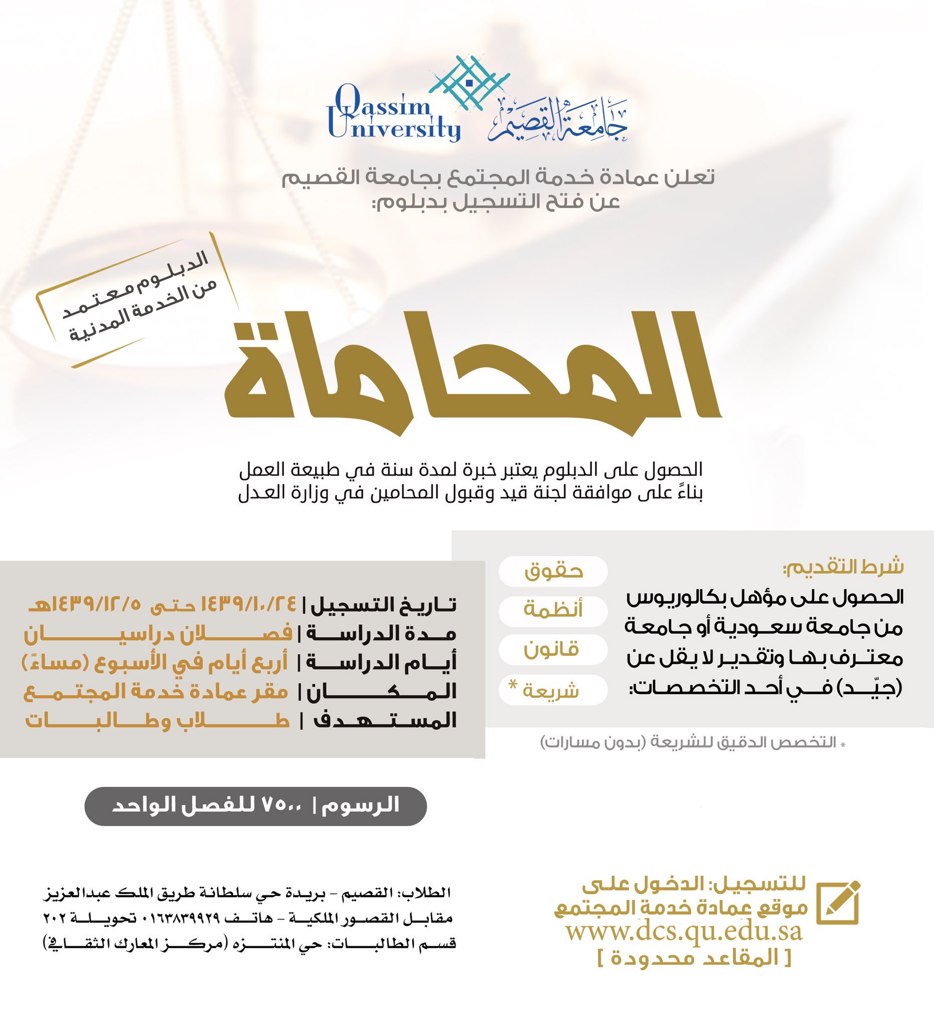 عمادة خدمة المجتمع Na Twitteru تعلن عمادة خدمة المجتمع عن فتح التسجيل في دبلوم المحاماة للتسجيل Https T Co Szcyhtaqq0