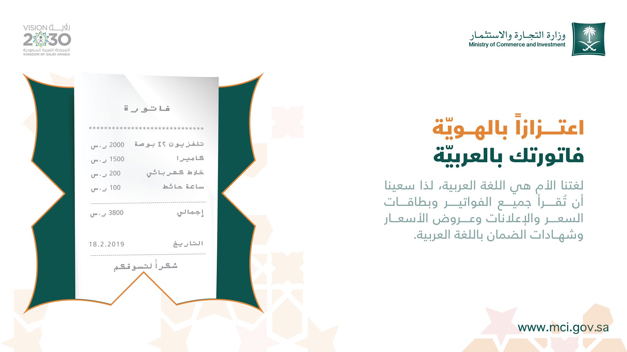 وزارة التجارة On Twitter عدم وجود اللغة العربية في الفاتورة يعد مخالفة اعرف حقك